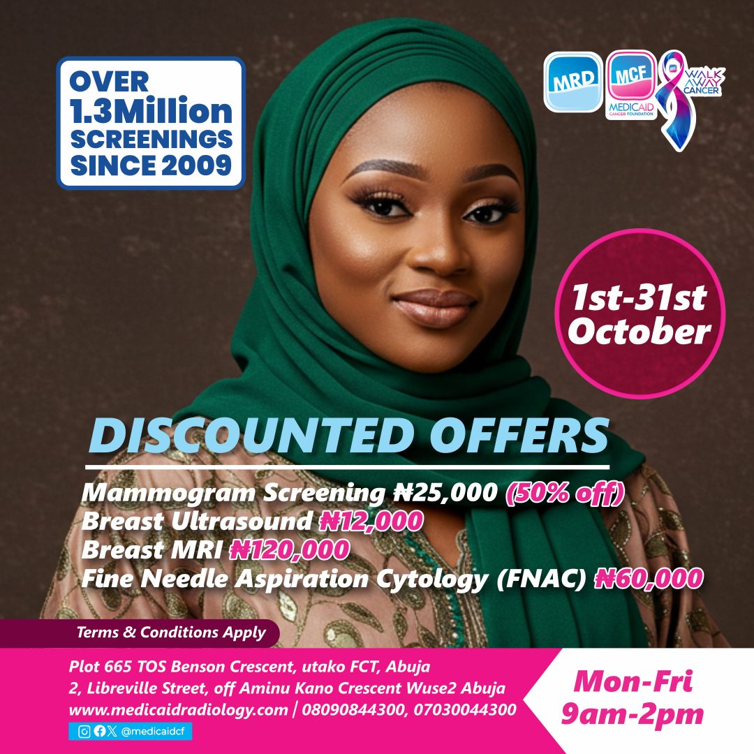 October is internationally recognized for breast cancer awareness. In Nigeria, late presentation is a major challenge, and increasing screening access is vital. Medicaid Cancer Foundation’s Pink October initiative is designed to bring screening, diagnostics, and treatment services to more women — especially those who would otherwise wait or avoid care.